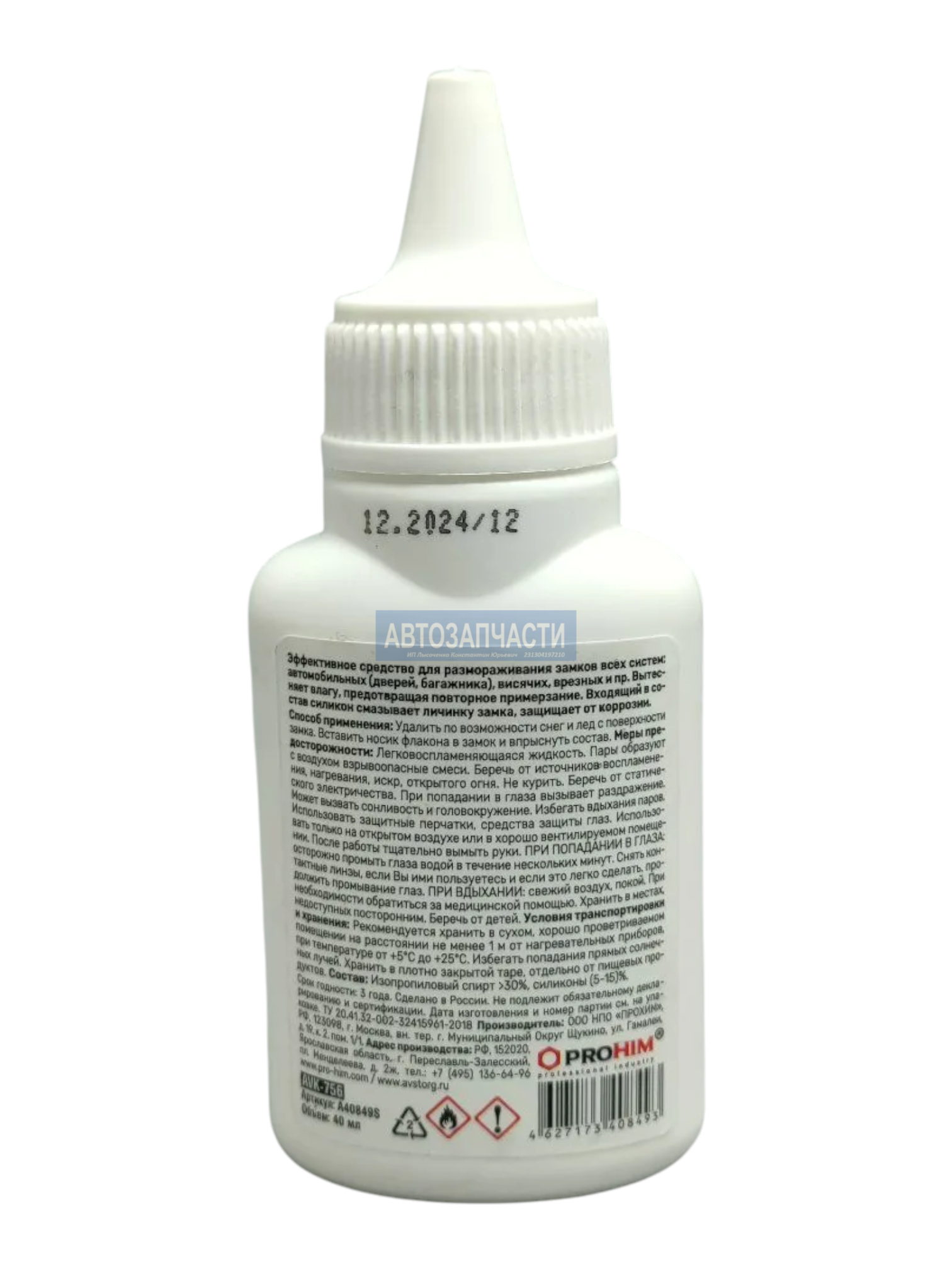 Способ применения: Удалить по возможности снег и лед с поверхности замка. Вставить носик флакона в замок и впрыснуть состав.