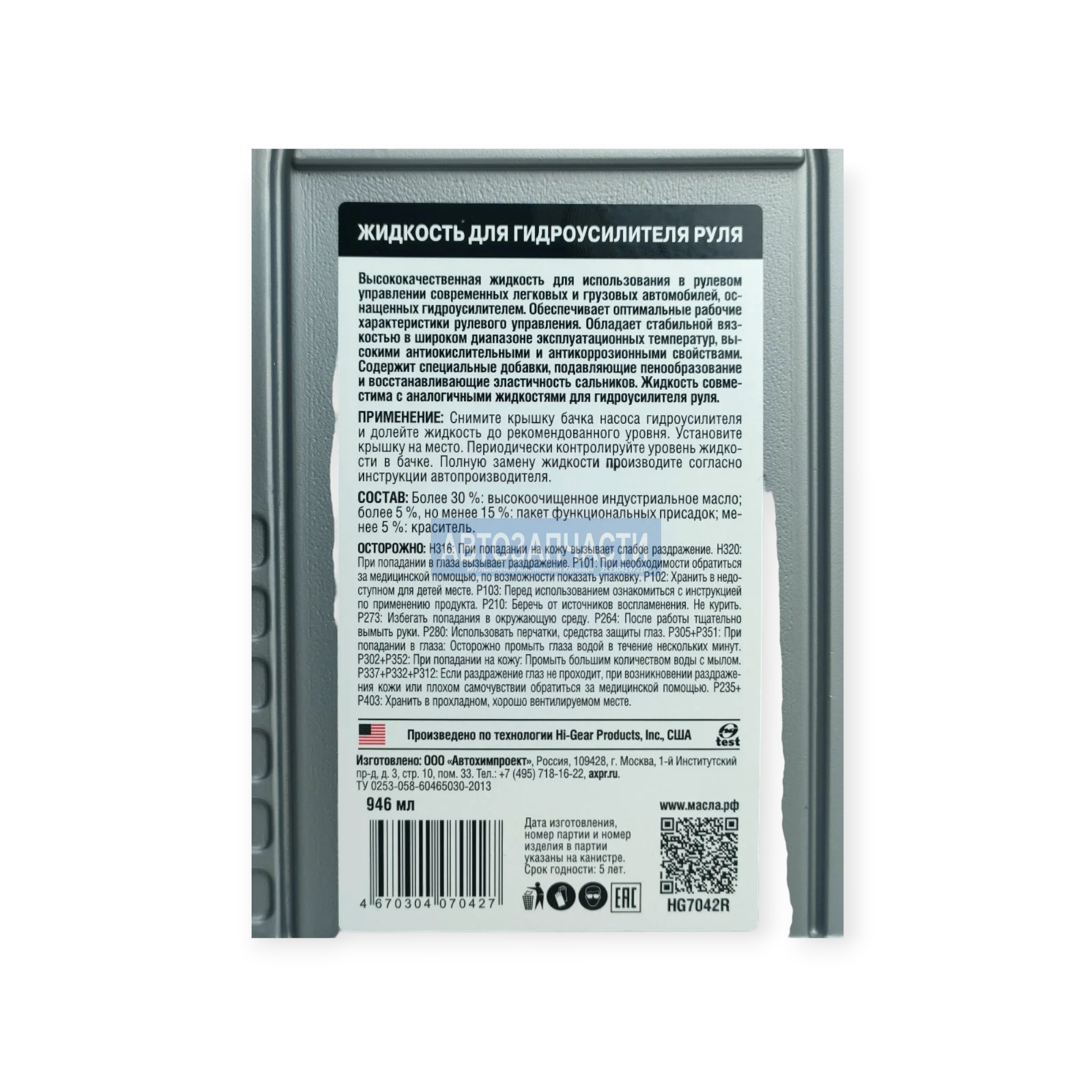 ПРИМЕНЕНИЕ: Снимите крышку бачка насоса гидроусилителя и долейте жидкость до рекомендованного уровня. Установите крышку на место. Периодически контролируйте уровень жидкости в бачке. Полную замену жидкости производите согласно инструкции автопроизводителя.